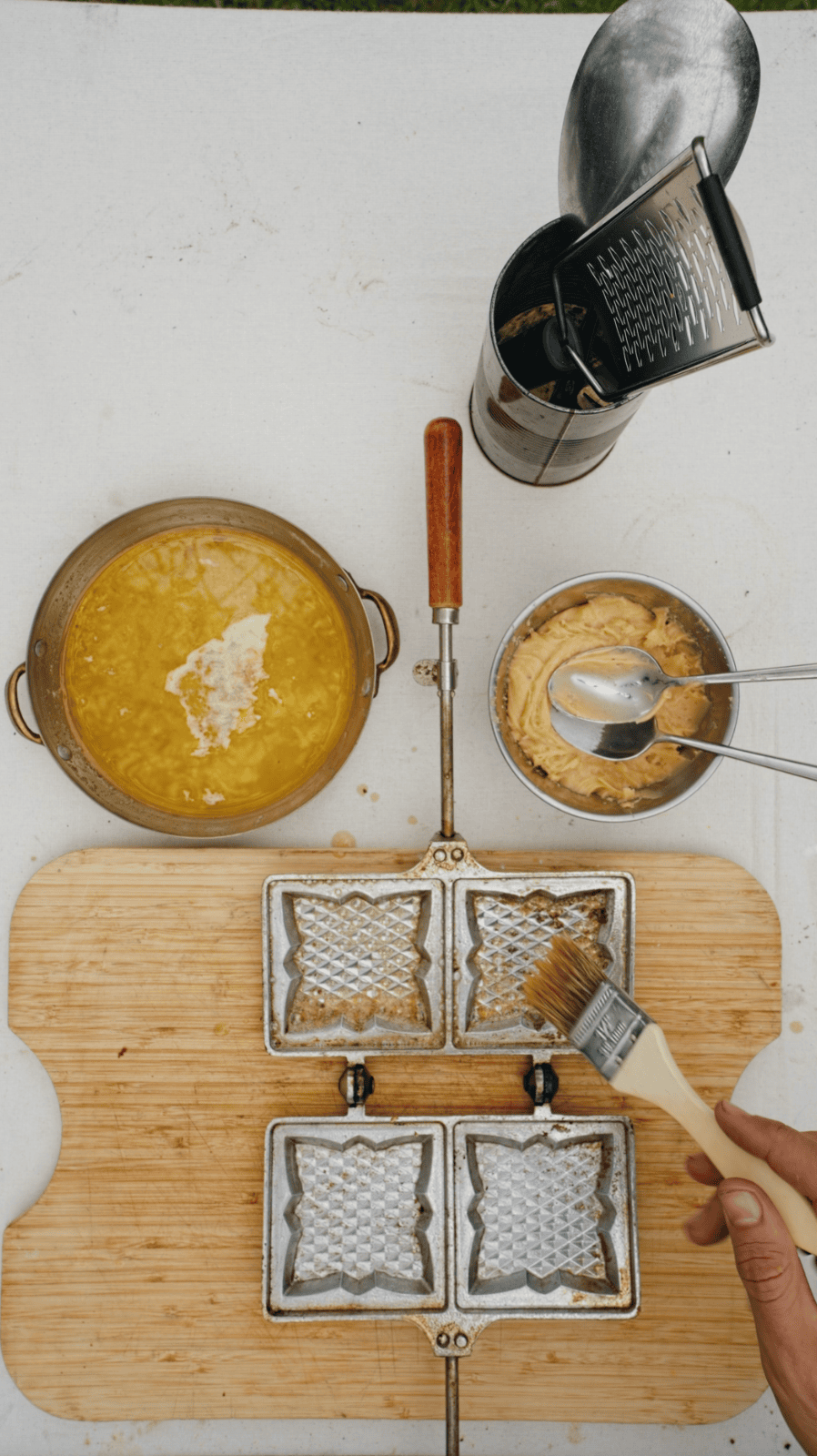 - Once chilled, brush your waffle iron with a bit of butter and add your batter. Cook in the waffle iron for 2-3 minutes on each side.