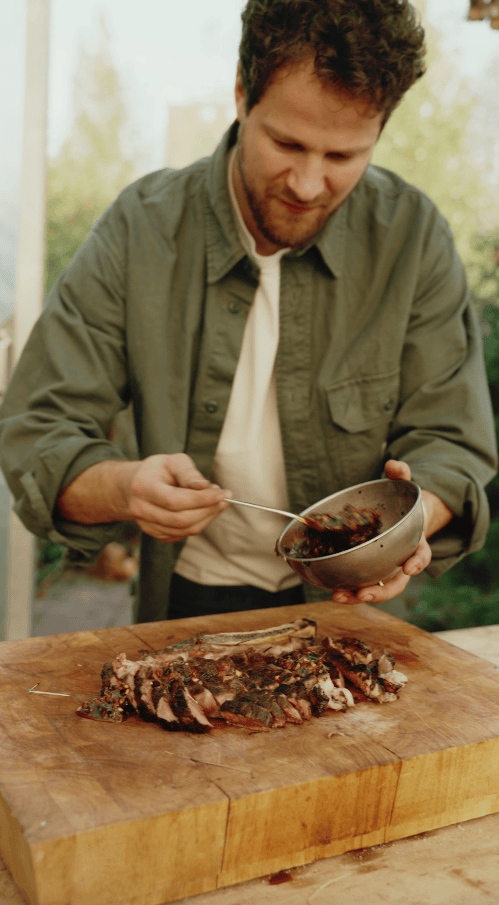 Smoky steak, perfectly cooked over charcoal, served with a tangy chimichurri that adds spice and vibrancy to the dish.