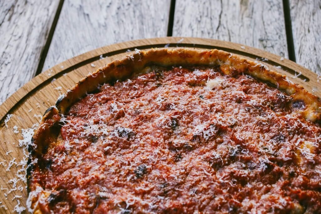 The Chicago pizza is round because of the pan it’s baked in, and its thick yet flaky crust is what distinguishes it from any other pizza. This pizza has either one or two layers of dough. When it has a single layer, which forms the crust of the pizza, it is called deep dish pizza. If there are two layers of dough, one for the crust and one as an inner layer, then it is called a stuffed deep dish pizza.Â
