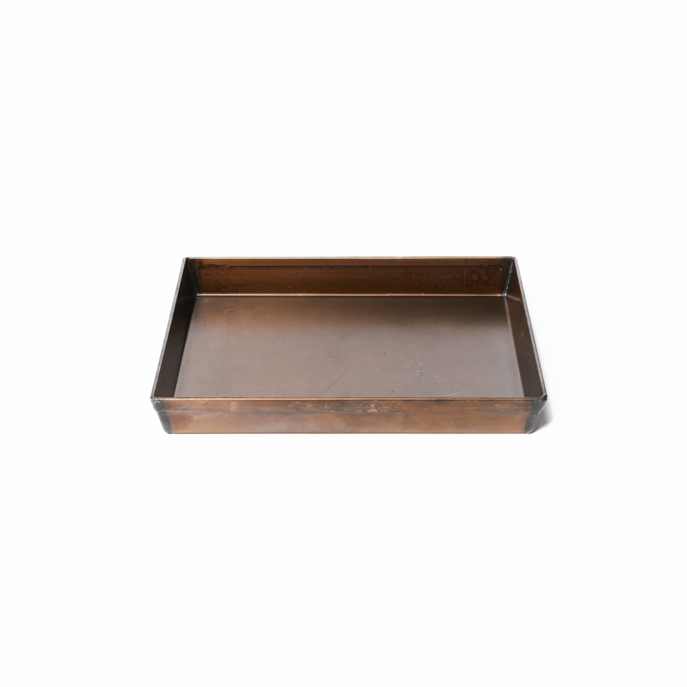 The bottom edge measures 27.5 cm (10.8”) long and 24.5 cm (9.6”) wide. It is 3.5 cm (1.4”) deep.